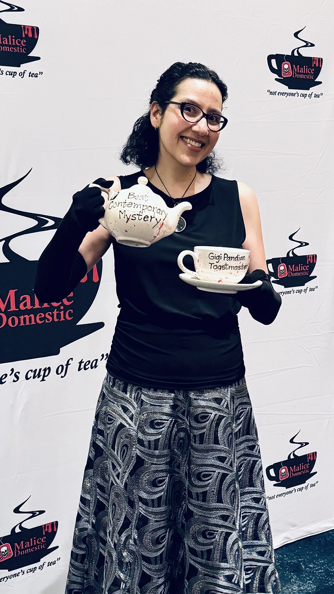 I have one previous Agatha Award for my locked-room mystery short story “The Library Ghost of Tanglewood Inn,” but this is the first time I won an Agatha for a novel. What a thrill! It was extra special both because I got my start as a writer at Malice Domestic when I was awarded the William F. Deeck-Malice Domestic Grant for Unpublished Writers (for my work-in-progress that became my debut novel, Artifact), and because I got to celebrate with my St. Martin’s Minotaur Books editor, who was at the convention.